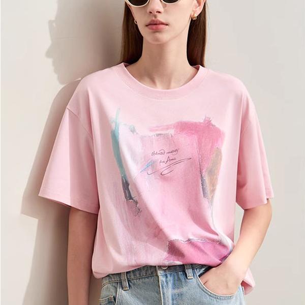 Minimalist Loose O-Neck Abstract Print T-Shirt for Women