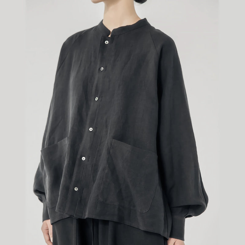 Linen Casual Long Sleeve Button-Up Blouse