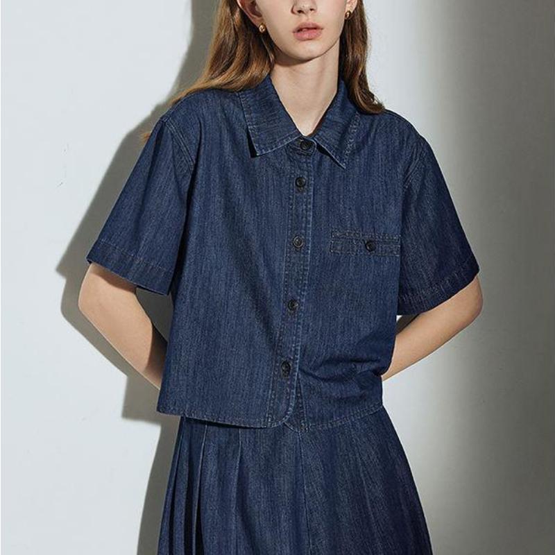 Chic Turn-Down Collar Denim Blouse for Women