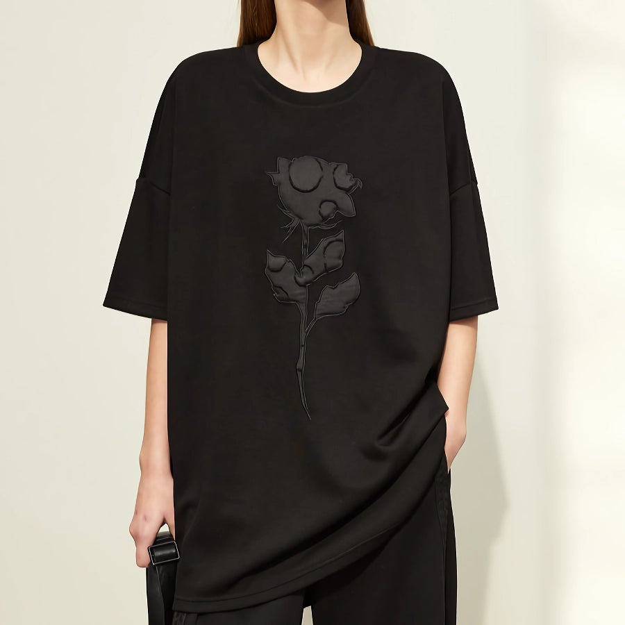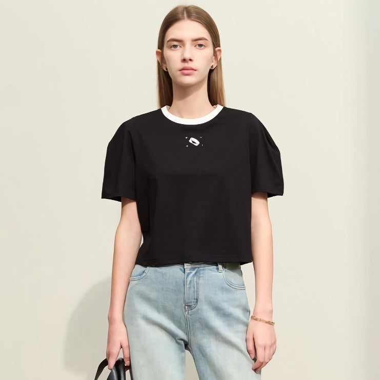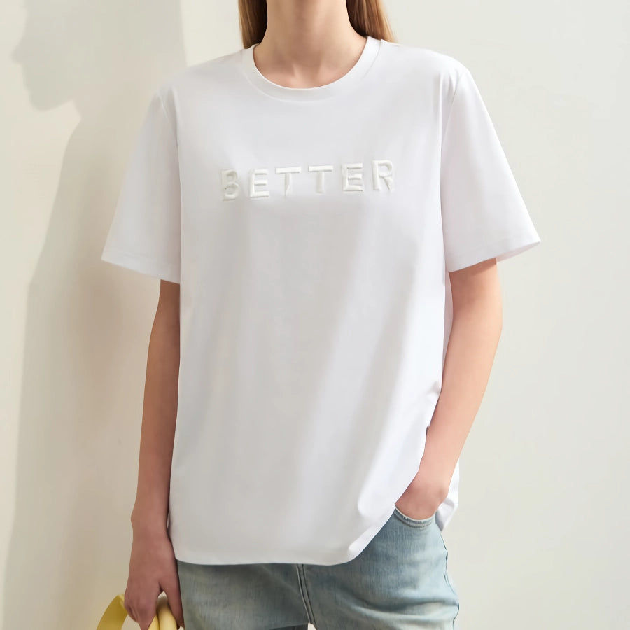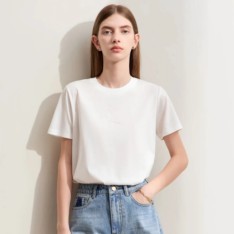 Minimalist Women's Short-Sleeve Embroidered Cotton T-Shirt