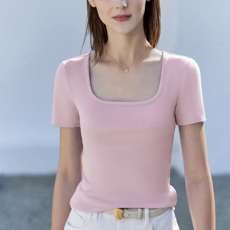 Minimalist Square Collar Women's Casual Basics Tee