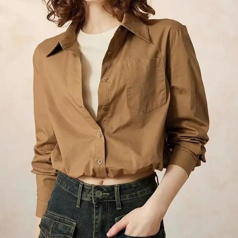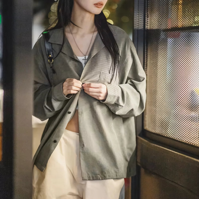 Retro Velvet Cuban Collar Long-Sleeved Oversized Casual Blouse