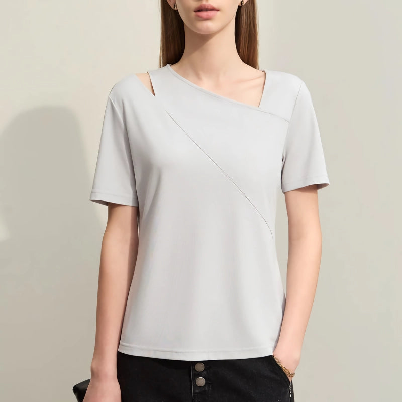 Minimalist Asymmetric Slash Neck Women's T-Shirt