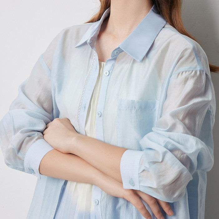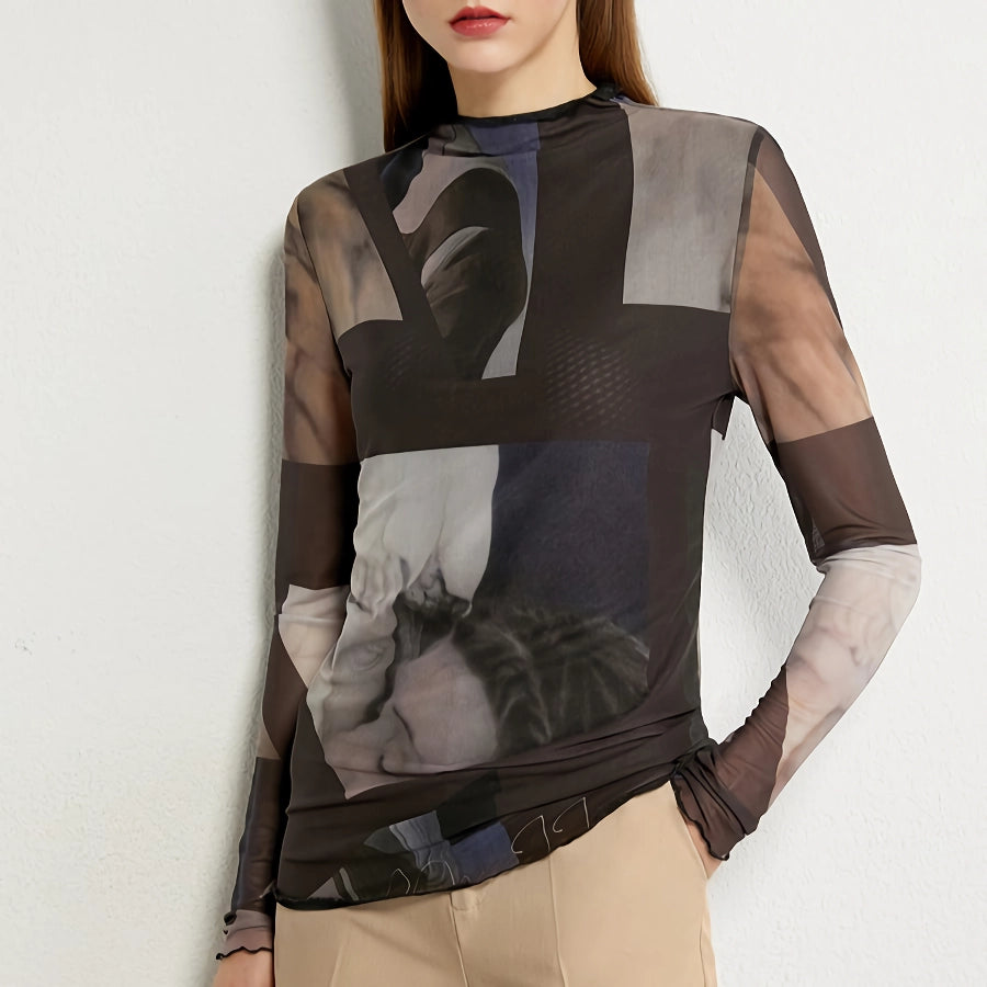 Minimalist Long-Sleeved Mesh T-Shirt for Women