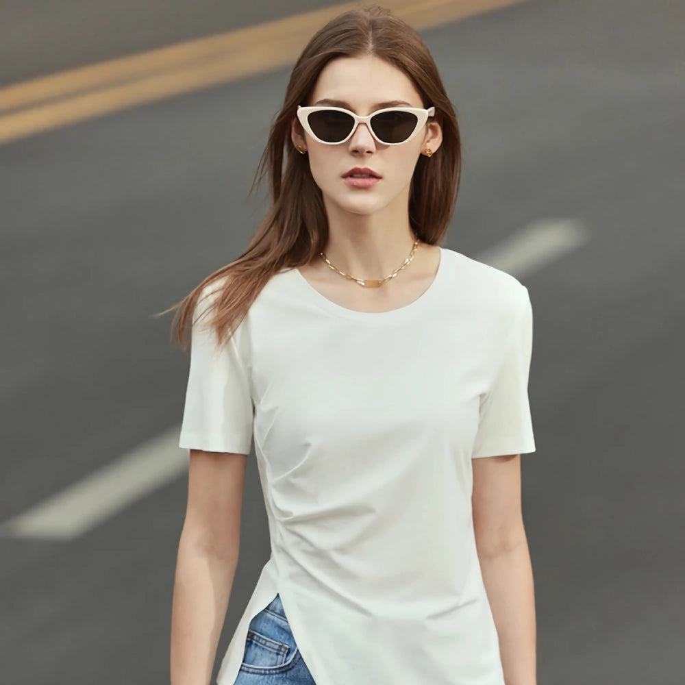 Minimalist Asymmetric O-Neck Short Sleeve Tee
