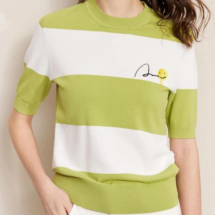 Striped Short Sleeve T-Shirt with Smile Face Design