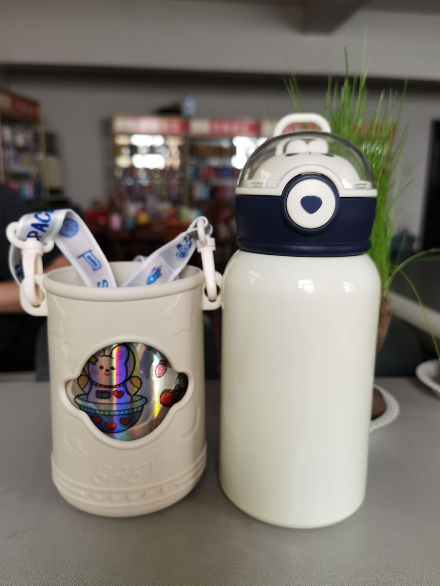Double-layer Stainless Steel Vacuum Mug Bottle With Leather Case Bouncing Cup