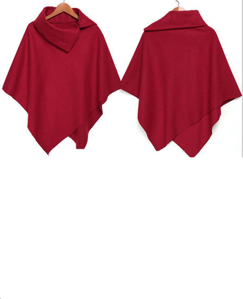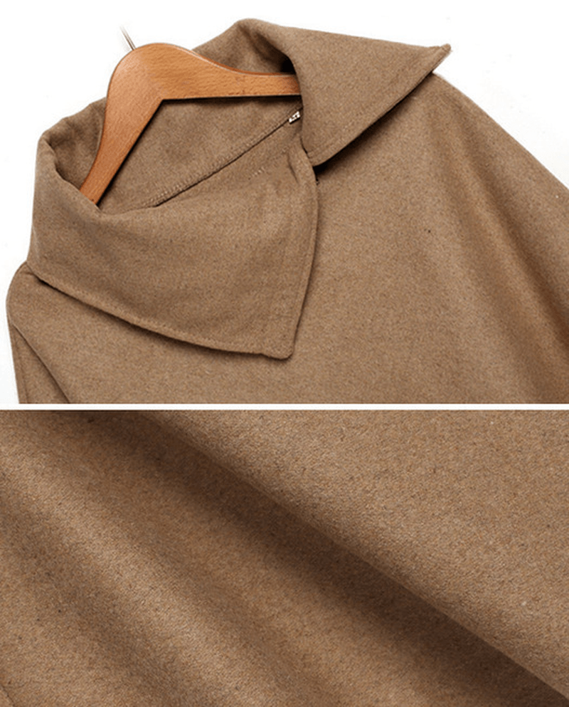 Fashion Collar Loose Irregular Hem Cape Coat Shawl