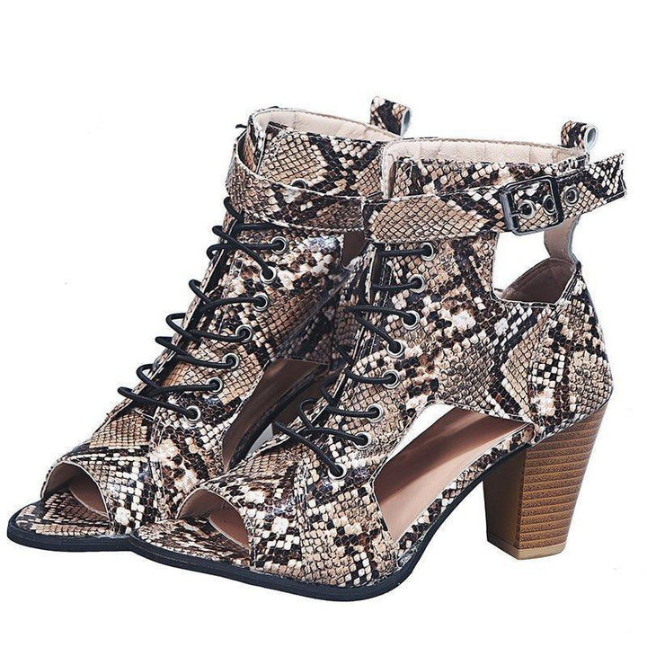 Fish Mouth Snake Print Thick Heel High-heel Sandals