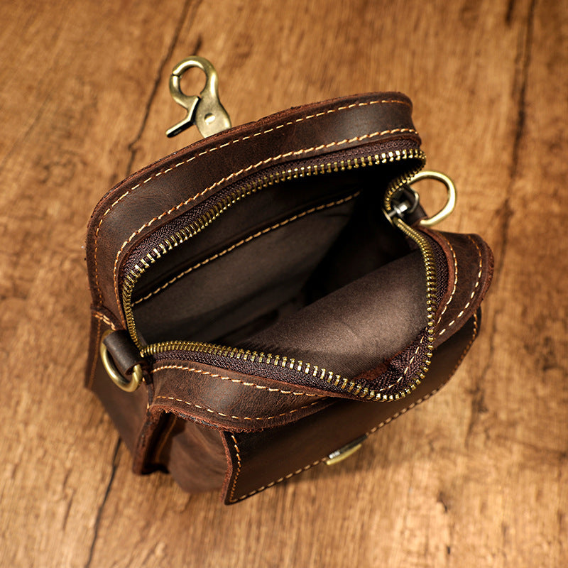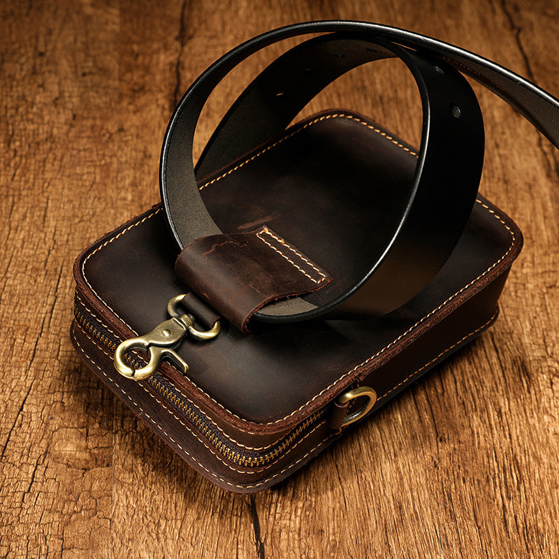 Hand-rubbed leather shoulder messenger bag