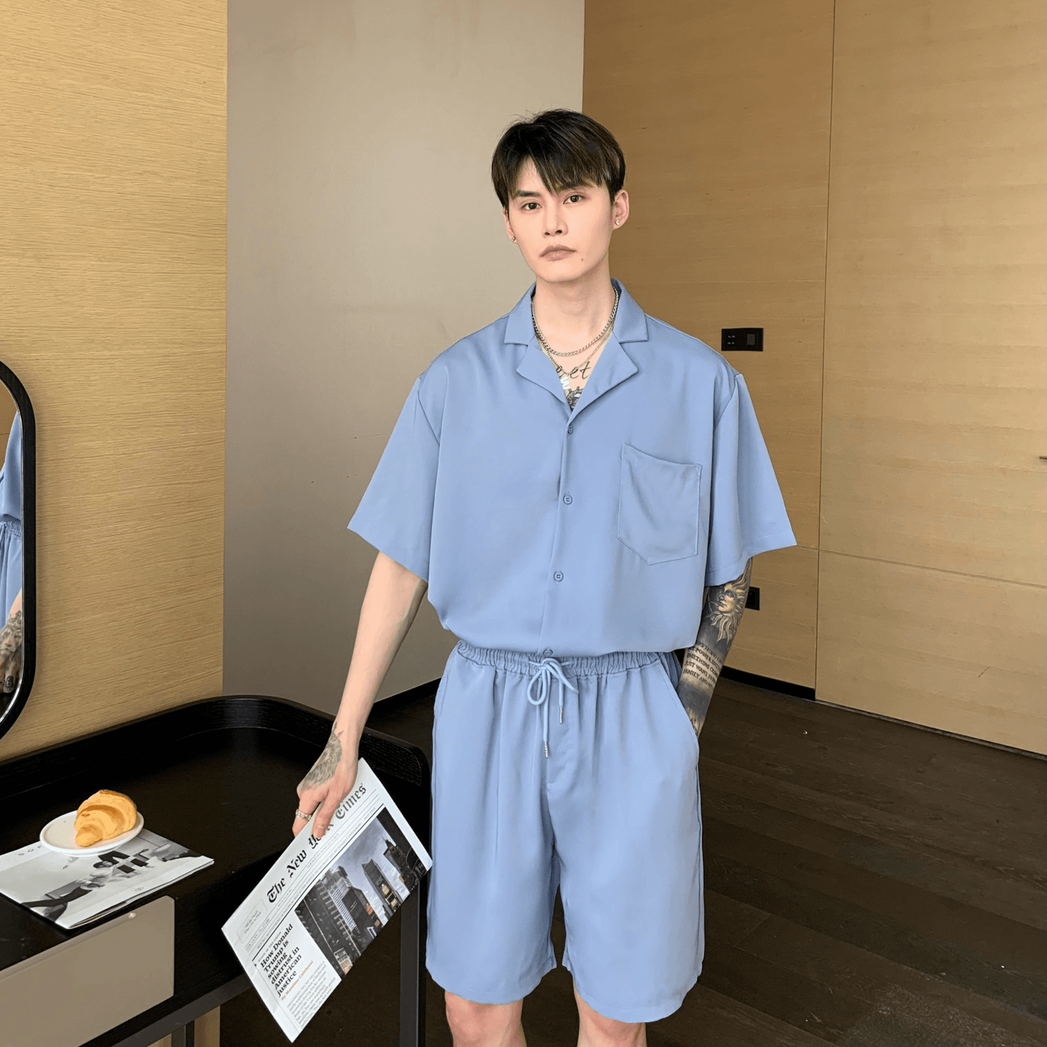 High-Quality Solid Color Shirt Men'S Drape Casual Lazy Style Suit Tide