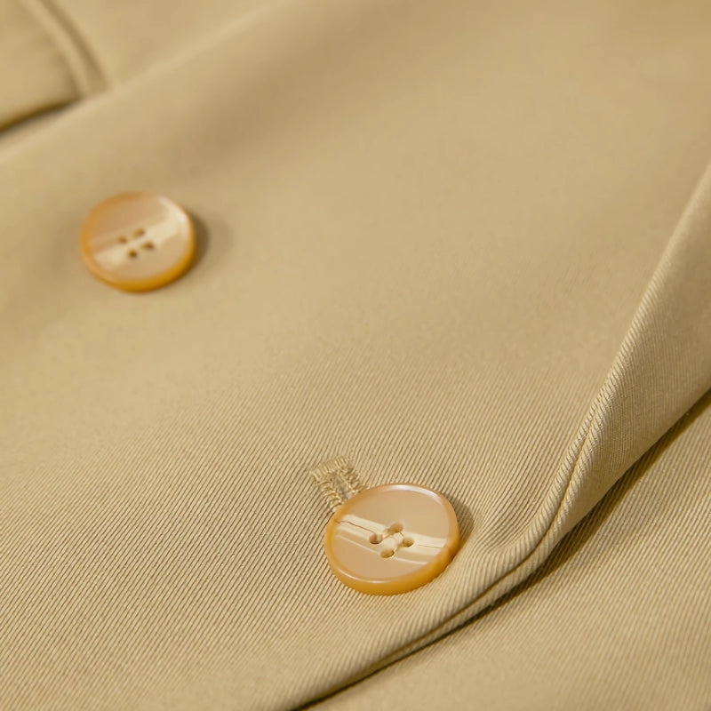 Our vest jacket is crafted from a blend of polyester, spandex, and viscose, offering a perfect balance of durability, stretch, and softness. The solid pattern and double-breasted closure add a touch of sophistication, while the turn-down collar exudes timeless elegance. With decorative buttons and pockets, this piece seamlessly blends style with utility.