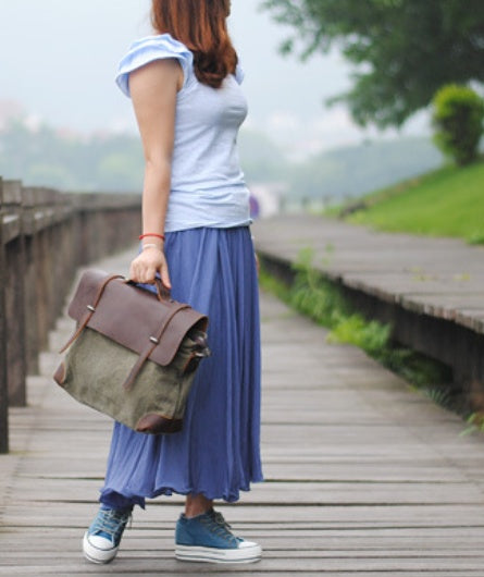 Men's Cowhide Crazy Horse Leather With Canvas Shoulder Bag Men's Bag