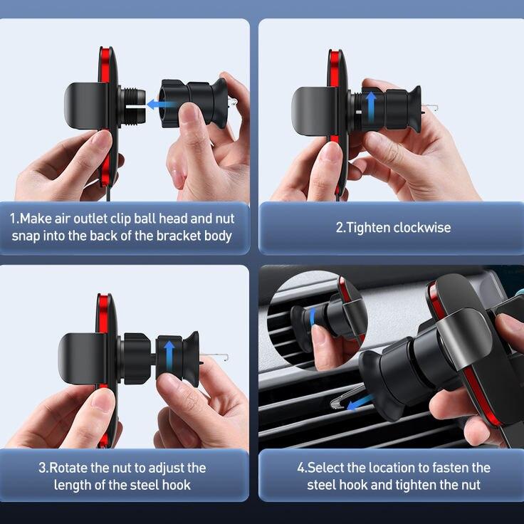 Our Metal Car Air Vent Phone Holder stands out for its impeccable blend of style, functionality, and reliability. Crafted from premium materials and equipped with innovative features like gravity traction and automatic loosening, it offers a superior driving experience like no other. Say goodbye to flimsy, noisy mounts and upgrade to the ultimate companion for your daily commute or long-distance journeys.