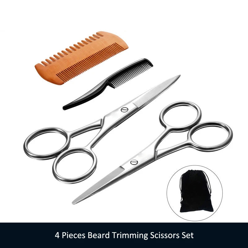 Our Premium 4-Piece Beard Grooming Kit is crafted with the finest materials to ensure long-lasting performance. The stainless steel scissors offer sharp precision cuts, making it easy to trim your beard to the desired length and style. The wooden comb is designed to prevent static and is perfect for both sparse and dense beards. The plastic mini comb is great for intricate areas, providing a smooth grooming experience.Benefits of the Kit