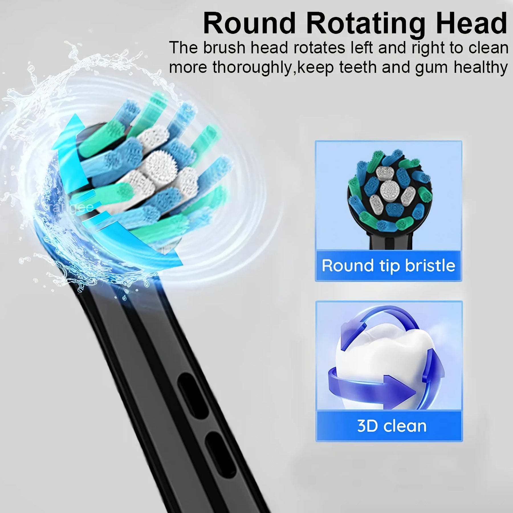 Achieve a healthier, cleaner smile with the *Rechargeable Rotating Electric Toothbrush for Adults*. This powerful electric toothbrush is designed to give you a superior clean by combining 3D cleaning action, multiple brushing modes, and advanced features that ensure your oral health is always a priority. With 8 replacement heads included, you'll have everything you need to maintain fresh, clean teeth for months.