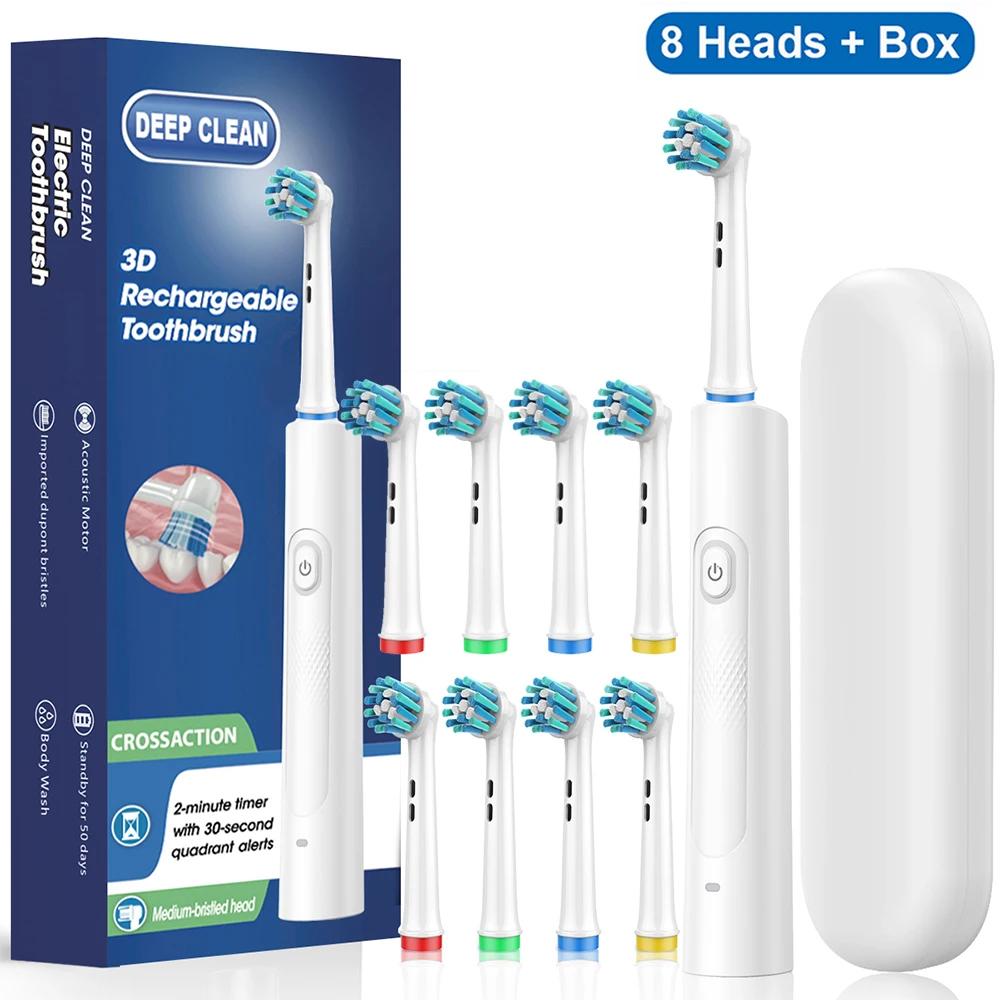Rechargeable Rotating Electric Toothbrush for Adults with 8 Replacement Heads