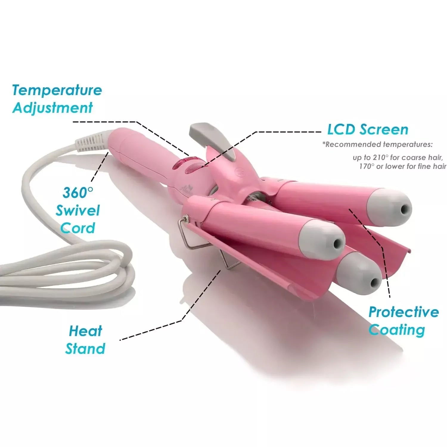 • Ceramic Glaze Coating: Ensures even heat distribution and protects hair, maintaining its natural shine and health.