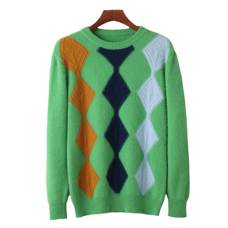 Winter Thick Round Neck Pullover Mink Wool Blended Sweater