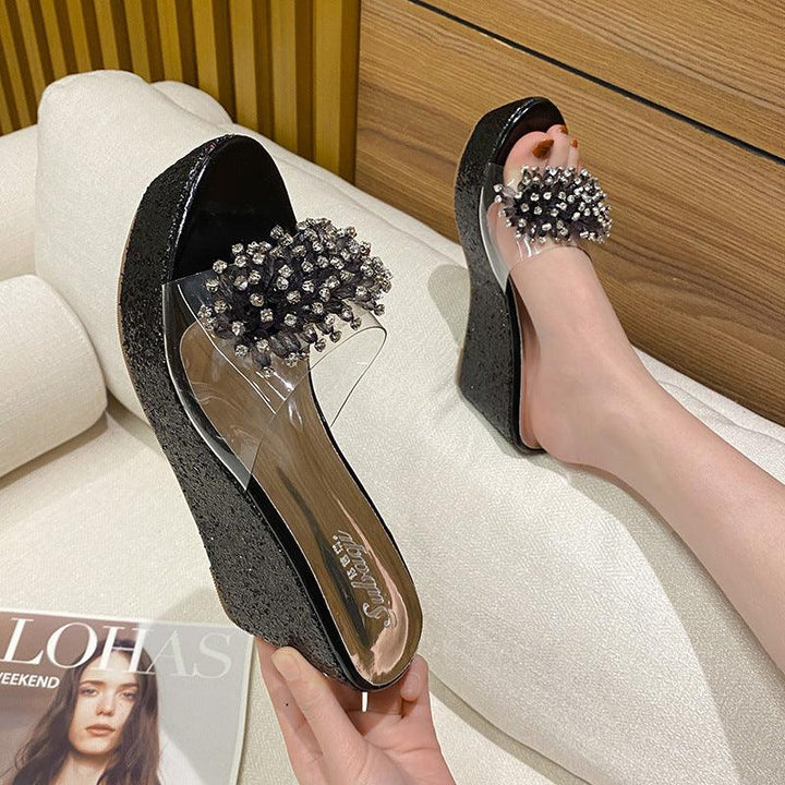 Women's Platform Thick Bottom Transparent Rhinestone Fish Mouth Slippers